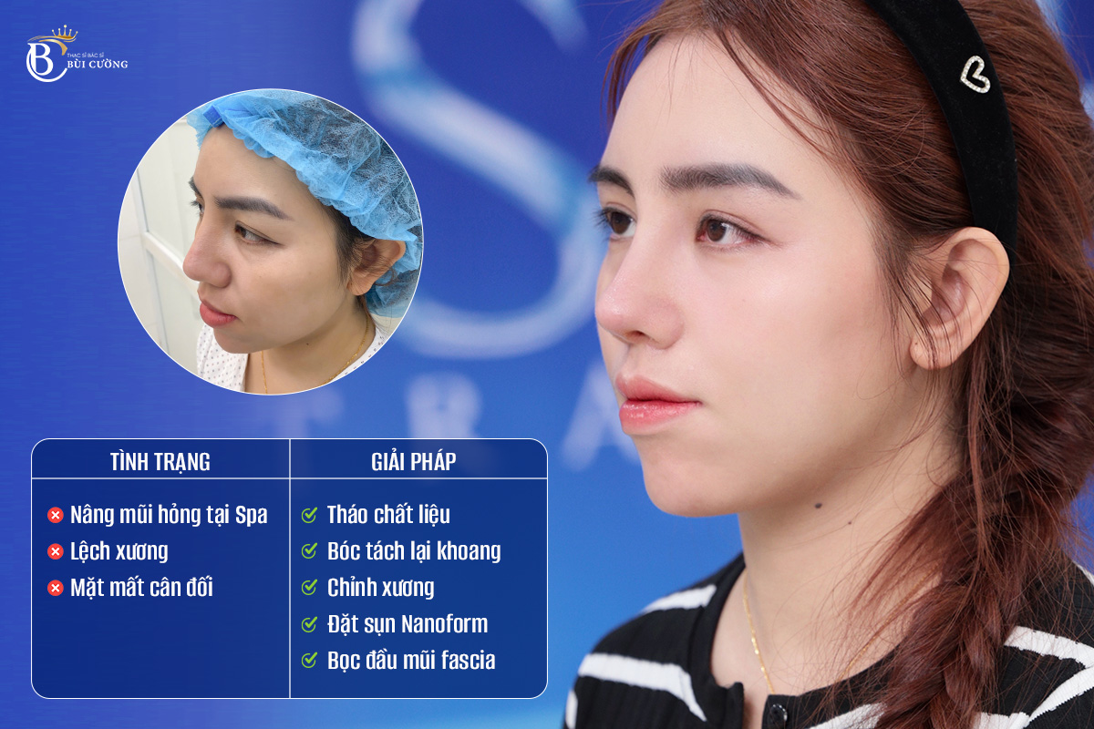 Trong trường hợp này, nâng mũi cấu trúc sẽ tái tạo khung mũi mới, kết hợp sử dụng sụn tự thân để phục hồi tổn thương và giảm nguy cơ biến chứng tái phát.