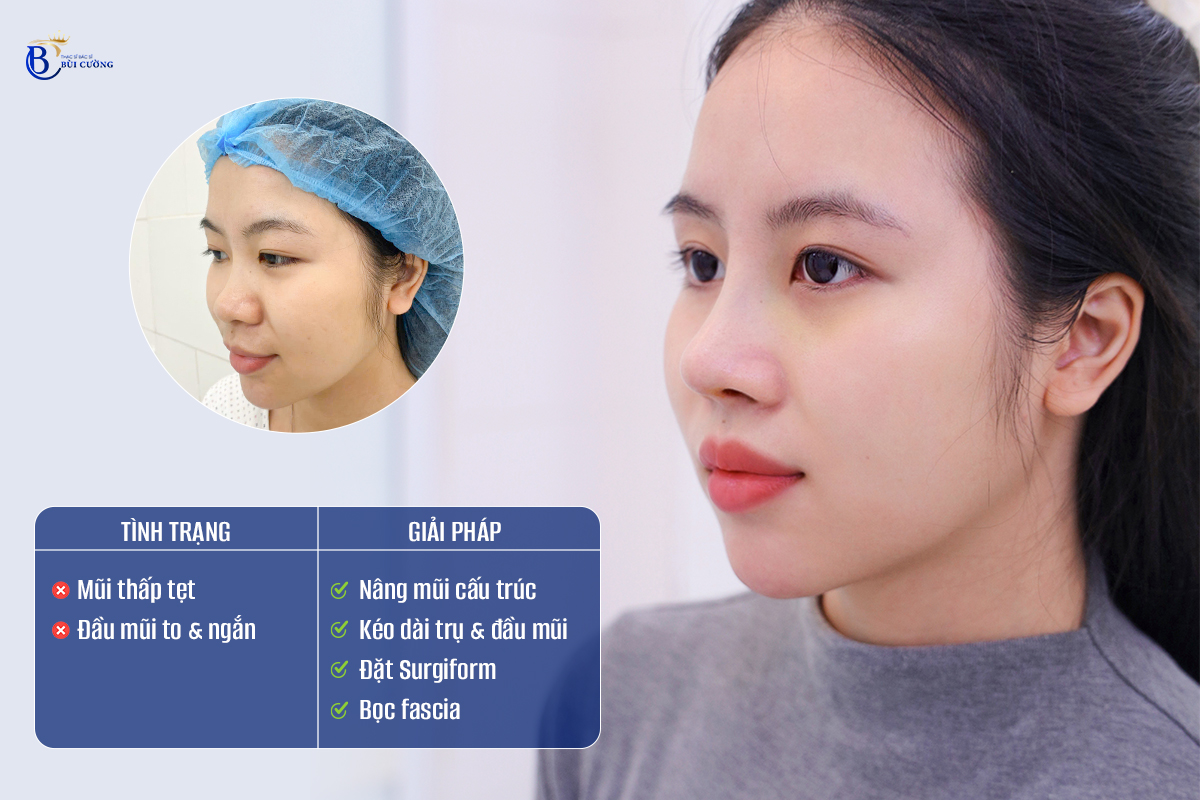 Khi đó, bác sĩ có thể chỉ định nâng mũi bán cấu trúc kết hợp bọc sụn đầu mũi, vừa cải thiện dáng mũi vừa giảm mức độ can thiệp phẫu thuật.